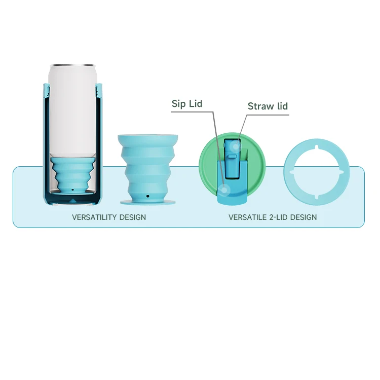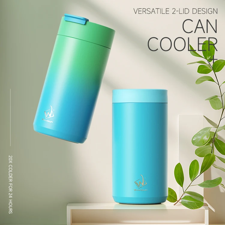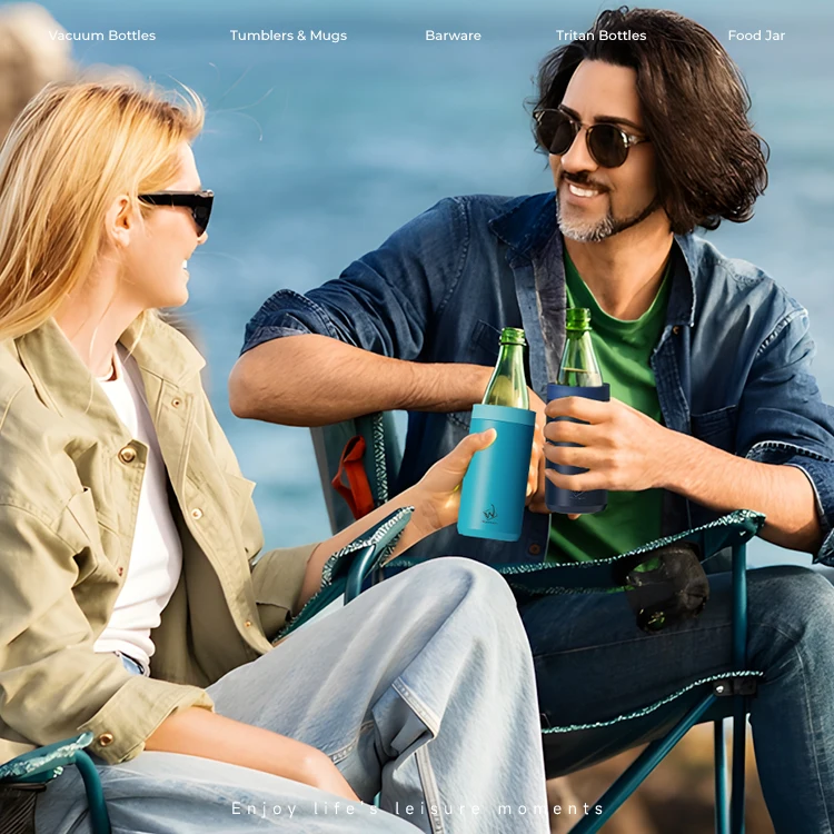 2025 gamechanger: herbruikbare Termo blikkoeler. Dubbele wand staal vergrendelt de koelte, past op elke 12 oz blik, custom kleuren/logos—drink duurzaam met stijl.