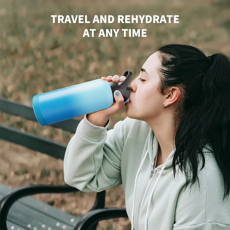 Dubbelwandige fles van 18/8 roestvrij staal voor kinderen – houdt dranken heet of koud, geurloos, licht en stootbestendig. Gezonde slokjes, vrolijke reizen.