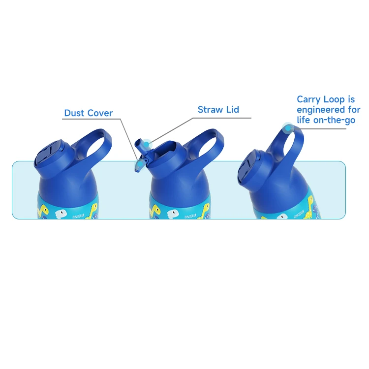 fles van 18/8 staal met klapklep rietje. Dubbele wand = 24h koud/12h warm. Eénhandbediening, flexibele handvat—hydratatie onderweg.