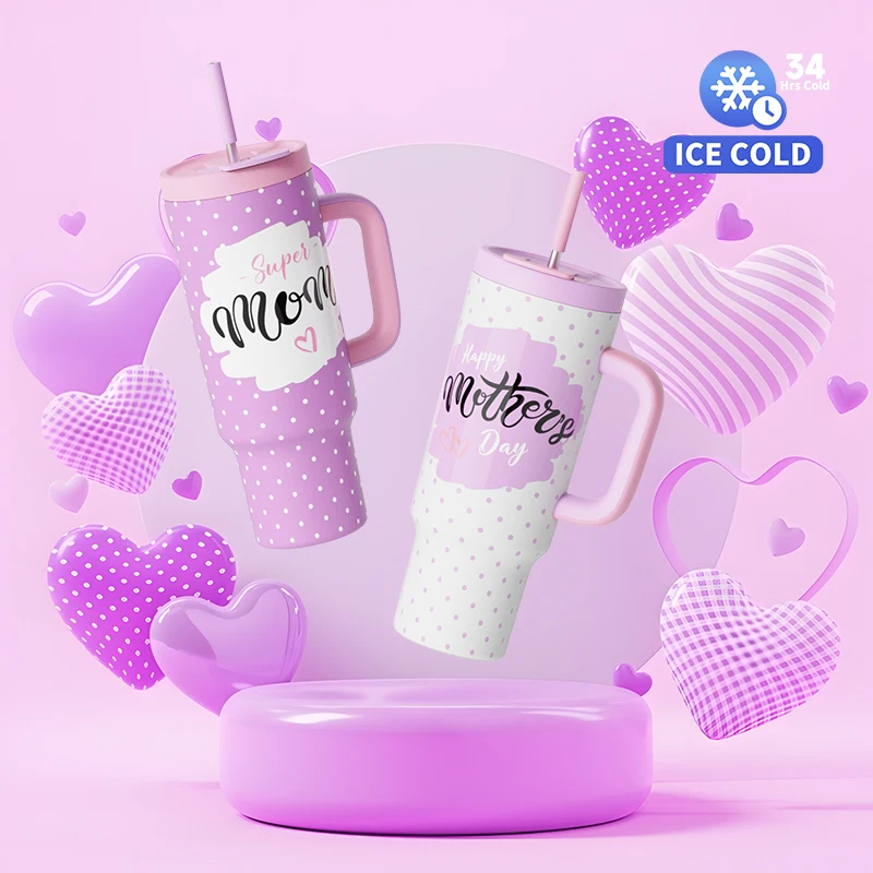 Nieuwe producten 2026 Thuis 40 oz tumbler met handvat, rietje en deksel voor moederdag