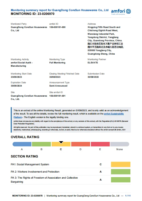 ISO9001/SMETA/BSCI/ISO14001/ISO45001/SA8000/LFGB/US STANDARD etc.... |